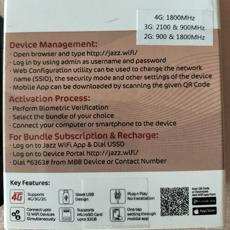 Jazz super 4G Wingle All Jazz Sim work | Dukan.pk